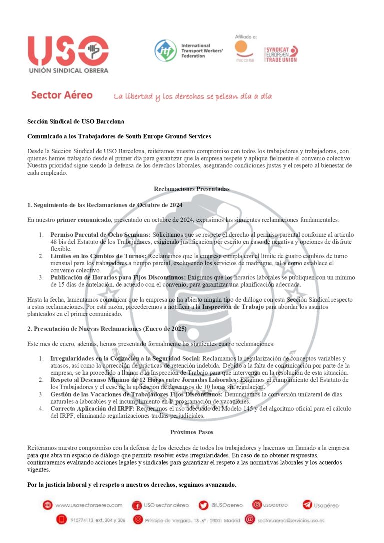 Irregularidades en la Cotización a la Seguridad Social: Reclamamos la regularización de conceptos variables y atrasos, así como la corrección de prácticas de retención indebida. Debido a la falta de comunicación por parte de la empresa, se ha procedido a